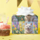 A cheerful dog sits peacefully on lush green grass, surrounded by colourful spring blooms under a soft blue sky. This digital oil painting captures a serene moment with expressive brushstrokes, warm colours, and a sense of gentle joy.