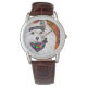 The watch looks really great! Very sharp and well done. The leather band is really nice, though for a man's watch I think it should be longer. Unfortunately, it isn't big enough for my husband's wrist but I will get a replacement because he is very excited to wear it!