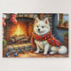 American Eskimo Fireplace with Christmas Lights Jigsaw Puzzle