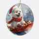 American Eskimo in Sledge Let it Snow Christmas Ceramic Ornament