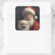 American Eskimo with Santa Claus Festive Christmas Square Sticker