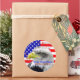 Great stickers that are bold and bright and in vivid colours. Easily add any custom text to these red, white, and blue patriotic illustrated shooting stars and stripes design stickers with a great photograph of a bald American eagle in the middle all with a backdrop of the American flag. Great as retail business sales and promotional stickers or even for the new eagle scout or election day voter giveaways. Get lots of these to have on hand for Eagle Scouts, Memorial Day, Veterans Day, July 4th, Labour Day, and Election Day. Shown is the popular round shape sticker. Add any text or just delete the sample text if not needed. Make great envelope seals and special event favours too!