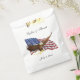 A waving US flag and a flying bald eagle. Add names and date of your wedding or event.