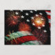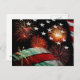 American flag and fireworks postcard