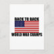 It's the classic Back to Back World War Champs postcard! Featuring the popular saying, and a high quality image of the US Flag. One of the most patriotic postcards you can send for 4th of July cookout invitations, Memorial Day, Veteran's Day, or ANY day of the year. It's sure to bring a smile and a laugh to the recipient ...Grab yours today!