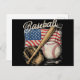 American Flag Baseball Player Bat Fan Catcher Pitc Holiday Postcard