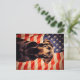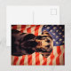 A close-up portrait of a Chocolate Labrador Retriever, its fur rendered in a painterly style, with a slightly blurred American flag as the background. The dog's eyes are focused on the viewer, conveying a sense of loyalty and patriotism. The flag's red, white, and blue colours are muted, creating a warm and nostalgic atmosphere. Ideal gift for labrador lovers.