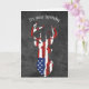 Deer silhouette with an American flag design on weathered black leather background for a birthday.