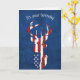 Deer silhouette with an American flag design on blue leather background for a birthday.