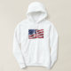 Comfy white cotton sweatshirt with hoodie. Wear with American pride. The flag is flowing with it's stars and stripes in the wind. To be lived in. Available in different styles (t-shirts) and colours. Also available in women's t-shirts.
