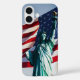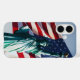 "Celebrate American pride with this striking design featuring the American Flag blowing in the wind behind the iconic Statue of Liberty. A bold and patriotic image, perfect for any occasion that honors freedom & Liberty."
