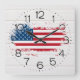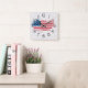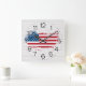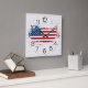 American Flag on White Wood Square Wall Clock