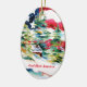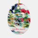 Patriotic "God Bless America" ornament that includes our beautiful flag, pine trees, snow and a log cabin. Design made from Chris Ambrose's original watercolor painting.