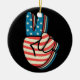American Flag Peace Sign Hand 4th of July Ceramic Ornament