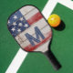 American Flag Rustic Red White Blue Monogram Pickleball Paddle