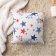 Add a touch of Americana to your home decor with this stylish throw pillow. This all-over print features a pattern of red, white, and blue stars on a crisp white background.