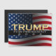 Donald Trump announced his public official candidacy for President in the 2024 elections. Show your support with this dark black and Flag with Gold metallic brick block effect lettering with a rich billionaire feel.