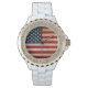 Our American Flag Rhinestone Accent White Enamel Watch is a cool all-occasion gift idea! Mod inspired design features the iconic flag of the United State of America, done up in a modern grunge style. Available in a variety of watch styles. Gift it or get one for yourself!