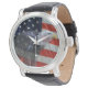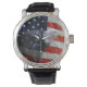 This patriotic watch has photo of the stars and stripes of the American flag blended with an American Eagle. Wide selection of styles and colours available.
