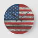 This rugged design features the flag of The United States painted on old wooden boards. The planks of wood have a weathered look with peeling paint visible throughout. This unique American flag pattern is a unique way to show off your patriotism