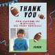 American Football Ball Sports Kids Birthday Photo Thank You Postcard. Football themed birthday thank you postcard with a thank you message, child`s name, child`s photo and football balls. Personalize this football card with your name and your child`s photo. Great for kids who love football and sports.