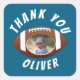 American Football Ball Sports Kids Birthday Photo Thank you Sticker. Football-themed birthday favour sticker with a thank you message, name and photo on a football ball. Great for kids who love football and sports.