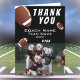 American Football Balls Black Thank you Coach Card with a Photo. Football thank you coach card with photo, thank you text, coach name, team name, year, your name and football balls. Photo thank you card - add your photo into the template. Personalise the card with names and your text.