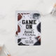 A stylish American football–themed birthday invitation with a clean white background and a vertical layout. The design features bold black varsity-style text reading “GAME ON” at the center. Below, elegant handwritten-style lettering invites guests to celebrate a child’s birthday. Realistic American footballs are placed around the edges, along with detailed football gear including a helmet, cleats, and a jersey. Subtle hand-drawn football play symbols (X’s, O’s, arrows, and lines) are scattered across the background, adding a playful sports strategy feel.