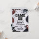 A stylish American football–themed birthday invitation with a clean white background and a vertical layout. The design features bold black varsity-style text reading “GAME ON” at the center. Below, elegant handwritten-style lettering invites guests to celebrate a child’s birthday. Realistic American footballs are placed around the edges, along with detailed football gear including a helmet, cleats, and a jersey. Subtle hand-drawn football play symbols (X’s, O’s, arrows, and lines) are scattered across the background, adding a playful sports strategy feel.