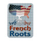 A map of the USA with the flags of France and America, and the text 'French Roots' underneath. Great for Americans proud of their French ancestry and for ex-pats.