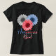 Patriotic shirt with coloured sunflowers and American flag lettering.