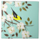 Stylised bird art of an American goldfinch on flowering dogwood tree branch