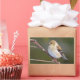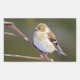Photograph of an American Goldfinch perched on a branch in a winter garden.