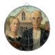 This is a regulation size dartboard with a rendering of the American Gothic artwork on it.