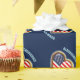 This patriotic wrapping features a heart-shaped American flag pattern on a blue background which can be easily customized with any text you like. Replace now the editable texts shown here as 'Albuquerque' and 'New Mexico' with your own wording and create on the spot your unique wrapping paper!