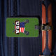 USA Lacrosse Luggage Tag Template. Customisable luggage / bag tags with front and back print. Just change the text using the text boxes in the 'PERSONALIZE IT' section to the right hand side of the design. To switch between the front and back of the luggage tag, use the little icons below the main image.