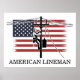 Honor the backbone of the American grid with this bold American Lineman Flag poster. Featuring a powerful silhouette of a lineman at work against a patriotic backdrop, this design is the ultimate tribute to the men and women who keep the lights on through every storm.