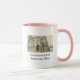American Heritage Series (reproduced from original rare antique print) of a "quintessential american man and his automobile" (early 1900's Minnesota) transferred to this coffee mug with pink trim. A rare one-of-a-kind treasure from Ken-Ray studios.