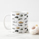 A mug with a pattern featuring the American military including multiple armoured vehicles and aircraft (jet fighters, attack planes and helicopters) for aviation and military enthusiasts.