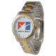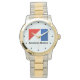 Very good quality watch that looks good whether dressing up or down. The band is sturdy. The watch is rather large so might not work for smaller folks. Recommended as a good gift. Printing is just a touch light but adds a nice touch of personalization.