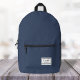This american nostalgia style classic backpack in navy blue features a patch style emblem with a monogram name and framed border, featuring informal handwritten script and modern block typography. The text can be customised with your name for a design as unique as you are!