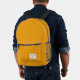 This american nostalgia style classic backpack in mustard yellow features a patch style emblem with a monogram name and framed border, featuring informal handwritten script and modern block typography. The text can be customised with your name for a design as unique as you are!