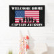 A simple military 'WELCOME HOME' banner, featuring, the american flag, the word "congratulations", soldiers in silhouette and the name of the soldier. All textstyle, size and colour can be changed by clicking on the customise further link after personalising.