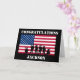 A simple military passing out greeting card featuring, the american flag, the word "congratulations", soldiers in silhouette and the name of the soldier.