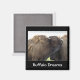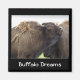 A young male Buffalo or Bull stands his ground as a larger Buffalo tests his courage. A young Buffalo or Bison as they are sometimes known, dreams of becoming a warrior in his herd, a soldier who defends when under siege and attacks when protecting his female mate. Wild Buffalo are fascinating to watch especially when they are interacting with each other. They conduct mock fights and mock courting rituals when young, in preparation for the real thing. Although considered dangerous, Buffalo are mild-mannered when in their own habitat and left to graze in peace. They are herbiforous meaning they graze on grasses like sedge and being ungulates, they also spend a lot of their daily routine chewing their cud and resting until the next browsing session