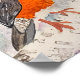 A gouache painting of an American robin perched on a birch tree with a metallic cool multicolored background.
