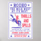 retro style illustration of a Poster showing an American Rodeo Cowboy riding a bucking bronco horse jumping viewed from side with words "Rodeo the wild west at its best thrills and spills adventure of a lifetime"