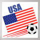 Show your pride in the American Soccer team by buying this gift featuring the American flag, the country name USA and a soccer ball flying across the bottom of the flag