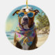 American Staffordshire on Beach,summer gift Ceramic Ornament