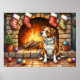 This warm and festive holiday illustration features an American Staffordshire Terrier sitting proudly beside a glowing fireplace, wrapped in colorful Christmas lights with stockings hanging above. The AmStaff’s strong build and sweet expression add charm to this cozy seasonal scene, making it perfect for breed enthusiasts and holiday décor lovers on Zazzle. A great Christmas gift idea for anyone who adores this loyal and affectionate breed.